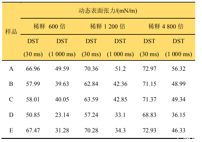 硝磺草酮悬浮剂制剂不同稀释倍数的动态表面张力测定结果