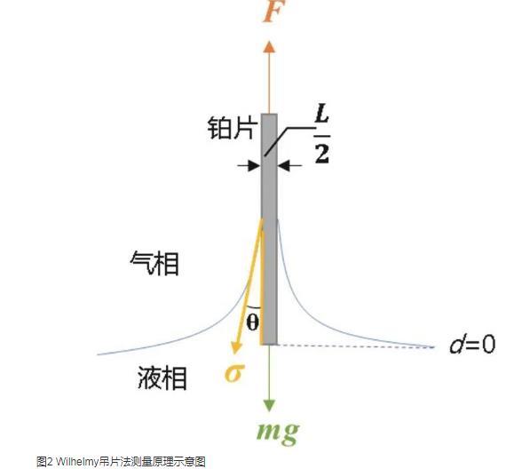 测量过程中,首先将铂金片安装在界面张力仪上,归零,即F=mg,此时,σ=0;当铂金片浸入样品溶液后,界面张力仪测得F,经过仪器内算法的换算,溶液的表面张力可在界面张力仪中直接读出。