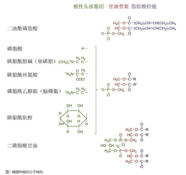 磷脂作为双亲性分子,是一种有代表性的表面活性剂。磷酸甘油酯(phosphoglycerides,PG)是磷脂的主要存在形式,其分子包含一个亲水极性头部和两个疏水尾部,甘油骨架上1和2位羟基被脂肪酸酯化,3位羟基被连有其他基团的磷酸基酯化(如图1所示)。磷脂的表面活性与疏水脂肪酸的种类和亲水端磷脂酸的极性有关,通常以芘探针法测定临界胶束浓度表征其表面活性。随着界面张力仪的应用开发,采用Wilhelmy吊片法测定磷脂溶液的表面张力等温线能够获得更多的分子性质信息,如表面超量、临界胶束浓度以及分子横截面积等,这对于选择磷脂种类、设计新型磷脂分子构建新型药物递送系统具有一定的指导意义。