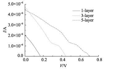 图6不同层数石莼类囊体膜LB膜组装成光电池的I-V曲线