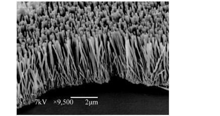 纳米ZnO是一种重要的光催化材料,具有成本低廉、生物相容性较好和电子传递特性较高的优点,因此在太阳能电池、传感器、光电器件等方面都有广泛应用。本实验采用水热合成法定向生长ZnO纳米线并用原子力显微镜(AFM)和扫描电镜(SEM)对其进行了表征,结果如图2和图3所示。