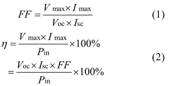 其中Vmax和Imax为最大输出功率时对应的电压和电流,Pin为入射光强。