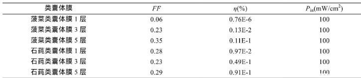 表1不同层数类囊体膜LB膜组装成光电池的光电性能参数
