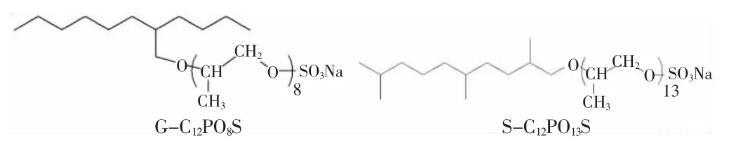 图1延展型表面活性剂G-C12PO8S和S-C12PO13S的结构式