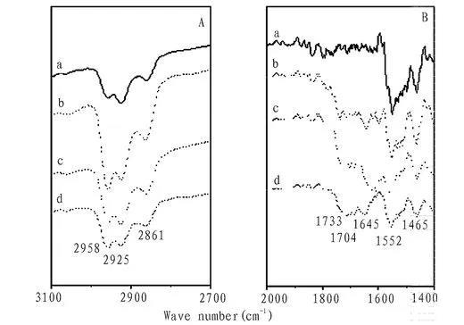 图5化合物1在不同亚相时转移30层膜的FT-IR图谱