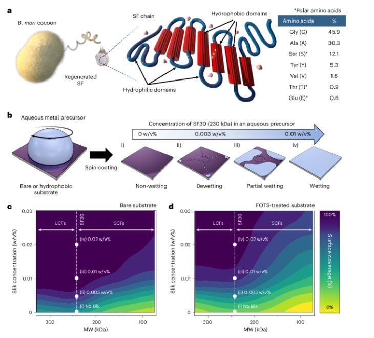 SF作为天然表面活性剂制造纳米器件,大大改善疏水表面的水润湿性