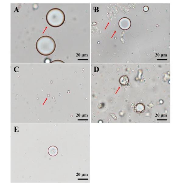 通过显微镜观察发现未添加橘皮素(TAN)和β-环糊精(β-CD)的乳液液滴粒径较大,且界面处未产生液晶。脂肪酶存在下,脂质消化过程中产生层状液晶。当该液晶与脂肪酶相互作用时会经历挤压机制,导致液晶外壳破裂,液滴中未水解的油被排出。分别含有TAN、β-CD和TAN/β-CD的乳液均处于第一产物层状液晶相的形成阶段,在相同的消化时间内消化行为相似。结果表明,TAN和β-CD都具有阻碍液晶相形成的能力,且TAN比β-CD的抑制能力更强。且TAN和β-CD的共存导致液滴表面液晶相的形成显著减少。