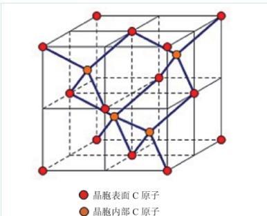 金刚石是由碳原子构成的复式晶格结构,如图12所示。金刚石这种特殊结构决定其具有独特的光学性能。金刚石透光范围宽,具备紫外~可见~远红外波段的穿透性,从紫外(0.22μm)到远红外(40——1000μm),除4μm——6μm位置上存在微小本征吸收峰(吸收系数为12.3 cm−1)之外,不存在其他吸收峰。