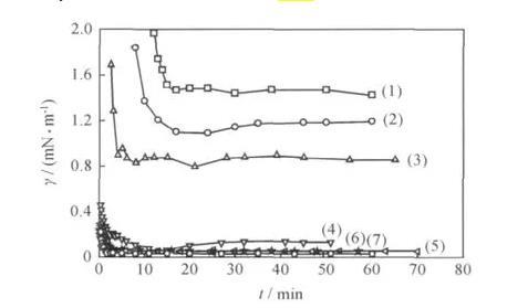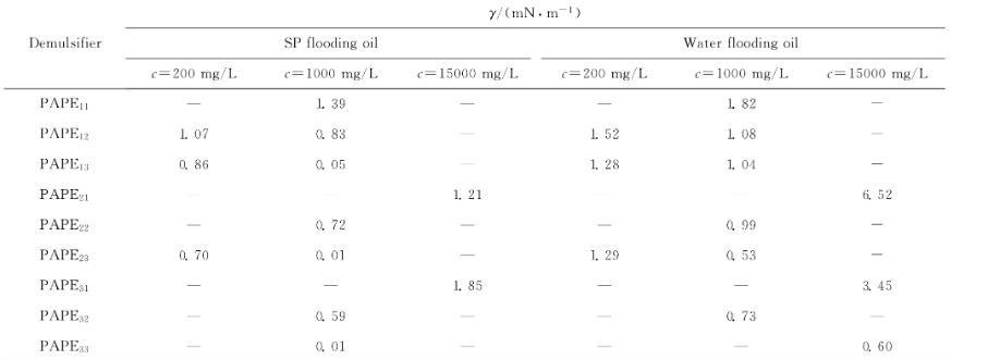 2.4酚胺树脂聚醚破乳剂(PAPEmn)对不同原油体系油-水界面张力的作用