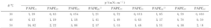 表2不同温度下9种PAPEmn溶液-孤东二元驱原油体系的油-水界面张力的稳态值(γ)