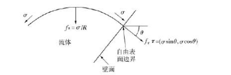 单位面积上的表面张力的合力fn使表面曲率减少,σ为表面张力系数,满足式(1):