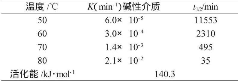 过硫酸盐氧化剂破胶,温度只能适用于60~130℃的地层,从过硫化物活性(分解速率常数或半衰期来表示)角度分析,在50℃以下,过硫化物破胶分解太慢,活性下降较快,不能作为压裂液破胶剂。在60~130℃的地层过硫酸盐分解速度才可以满足压裂液完成任务后快速破胶,迅速反排的要求。