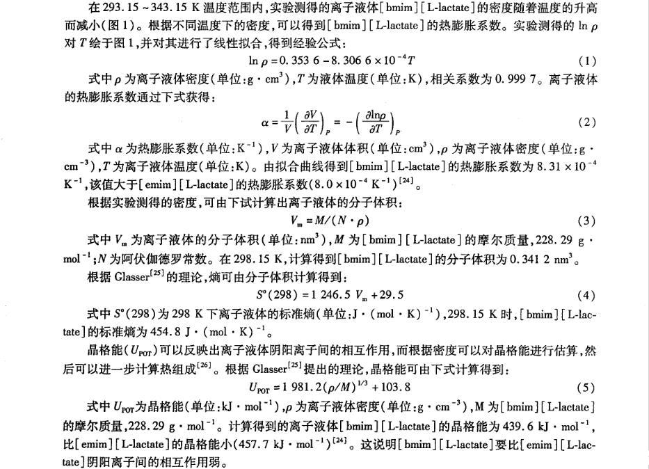 根据实验测得的密度,可由下试计算出离子液体的分子体积: