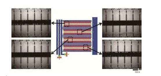 目前制约微流控技术实际应用的重要因素是其处理通量低,无法满足实际工业生产的需求。以上述微通道中萃取稀土离子为例,该过程连续相的流量仅为4mL/min,显然不能满足大量浸矿废水处理的需求。目前关于微萃取设备的放大主要有两种途径。其中,微通道并行放大是大规模生产乳液和气泡的一种常用可靠途径。Jeong和Chen等设计了一种并行聚焦流微通道用来制备气液液双乳液,实现了在10cm×10cm的PDMS上并行了400个聚焦流微通道(图7)。双乳液的生产通量可达3L/h,可在1h内制备1011个高度单分散的中空液滴。利用该设备进行稀土离子的萃取结果表明相比于单一微通道结构,该设备的处理通量提高了10倍,且稀土离子的萃取率可在数秒内提高至98%以上。本文作者所在的研究团队发明的膜分散微萃取设备同样可以实现微通道萃取设备的有效放大,对于膜分散微萃取设备,其分散介质为含有众多规则排列微孔的不锈钢薄膜,每个微孔相当于一个微通道,其处理量可提高到200mL/min;该团队进一步发明多通道膜分散微结构设备,已经成功应用到万吨级/年处理量的气体吸收和液液萃取过程,为稀土萃取回收过程放大提供了坚实的基础。从气液液微分散萃取过程的放大研究进展来看,处理通量已经不再成为制约其发展的问题,多通道膜分散微萃取设备有望实现高通量快速富集回收稀土离子的目标。