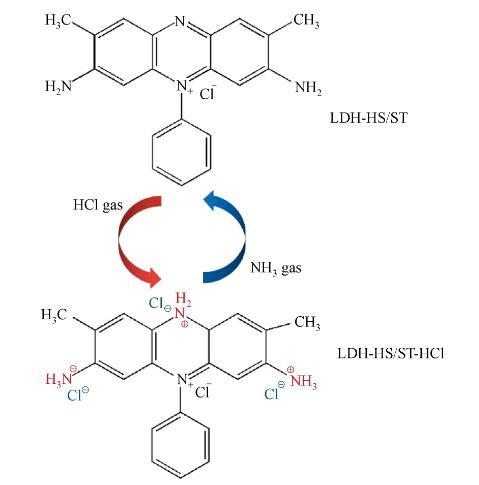 图5 HCl和NH3气体对LDH-HS/ST LB复合膜的化学反应机理