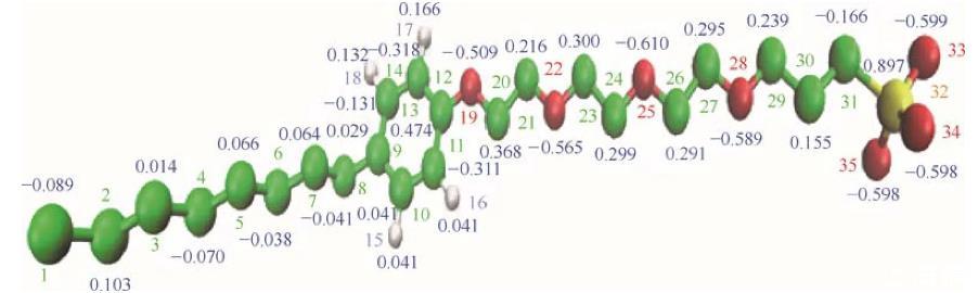 图1辛基酚聚氧乙烯醚磺酸盐的分子结构以及电荷分布