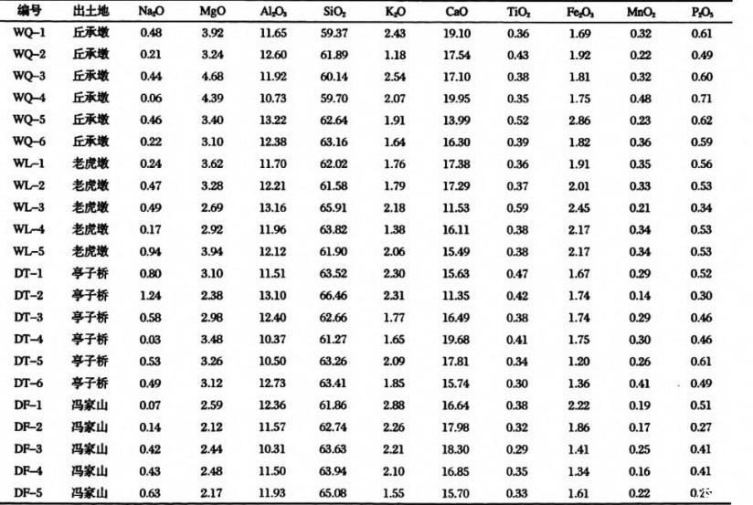 表1无锡鸿山贵族墓、德清窑址出土原始青瓷样品釉的主、次量元素组成(wt%)
