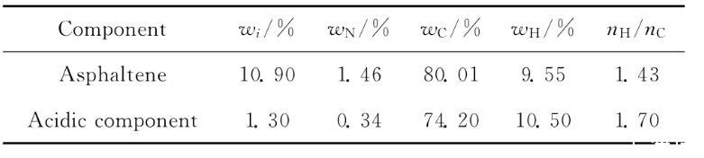 胜利原油中沥青质及酸性组分的含量及其元素分析结果列于表1。