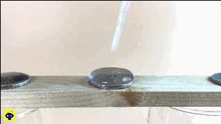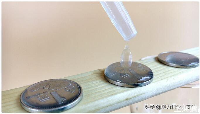 正是由于这个力,硬币上的水滴能够凸起来,在极限值到来之前,液滴都不会倒塌。