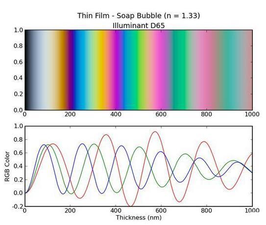 泡泡膜颜色与厚度的关系|来源:physics.stackexchange.com