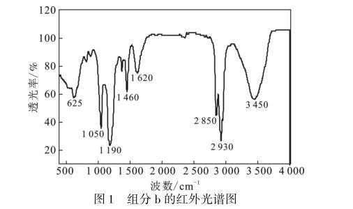 由上可知,只有组分b的界面张力达到超低,说明石油磺酸盐中主要起作用的物质集中在组分b中,因此对组分b采用红外光谱、质谱、核磁共振等方法测定其结构,并通过理论计算与实验数据相结合,推断组分b的大致分子结构。