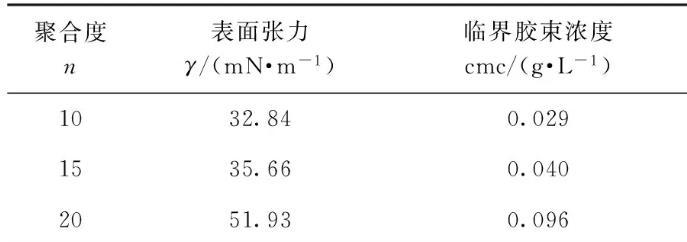 表1马来酰蓖麻油酸聚乙二醇(n=10、15、20)酯的γ和cmc