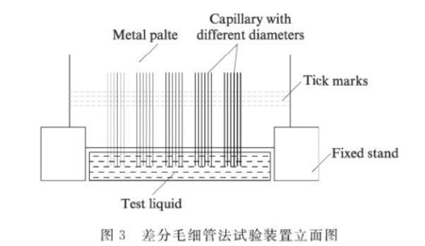 现行的高温液态沥青表面张力的测试方法有毛细管法、差分毛细管法和悬滴法等。毛细管法在测量沥青上升高度时,由于液体对毛细管外壁的浸润作用而产生测量误差,对试验结果影响较大。有研究机构曾使用差分毛细管法测试高温液态沥青的表面张力,但忽略了接触角、修正高度、毛细管内半径优选及标定对测试结果的影响,试验结果具有一定的偏差。根据笔者前期的研究,对于沥青类高黏度液体而言,悬滴法达到平衡状态需要较长时间,加之缺乏平衡状态的判定准则,难以得到准确的悬滴图像轮廓;且沥青悬滴与针头相接触部分的黏附力较难确定,针头的大小和类型对于沥青表面张力测试的适用性较难确定。