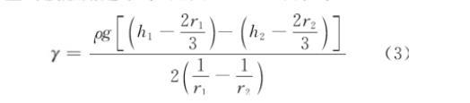 在式(3)的基础上,忽略接触角和修正高度,得到差分毛细管法测试沥青表面张力的现行公式: