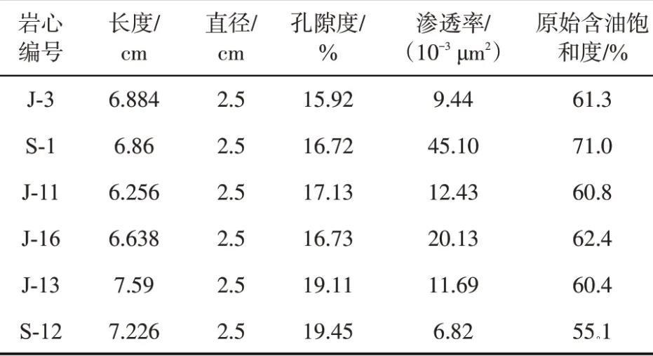 式中:t—渗吸采收时间,min;K—多孔介质的渗透率,μm2;—多孔介质孔隙度,1;μw—水的黏度,mPa·s;μo—油的黏度,mPa·s;LC—岩心的特征长度,在实验条件下用岩心长度L和直径D表示为
