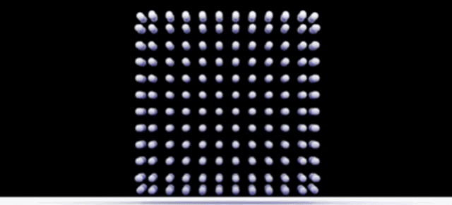 模拟正方体形水分子在重力、表面张力、内部斥力共同作用下在平衡状态趋于球状