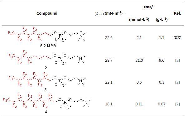 表3磷酸胆碱氟表面活性剂的表面活性数据