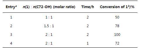 蜜桃性爱视频网站将原料1和C72-OH等物质的量比混合,以超干四氢呋喃(THF)为溶剂,在0℃下进行反应,2 h后通过核磁氢谱(1H NMR)观测到有产物生成。但原料C72-OH的转化率仅为50%(表1,Entry 1)。因此,蜜桃性爱视频网站对反应物的比例、反应时间做进一步优化。结果显示:在原料1与原料C72-OH物质的量比为2∶1,反应时间为2 h的条件下,原料C72-OH可完全转化(表1,Entry 3)。接下来,蜜桃性爱视频网站将中间体C72-P与3 equiv.三甲胺(2 mol/L in THF)溶解在乙腈中,在70℃下反应48 h,高产率得到目标产物C72-MPB.用类似方法合成了结构相似的氟碳表面活性剂6:2-MPB(表2),并对比了C72-MPB与6:2-MPB的表面活性性能。