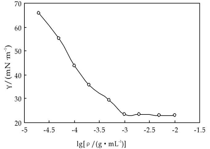 FSS的质量浓度(ρ)对其在水中的表面张力(γ)的影响如图2所示。