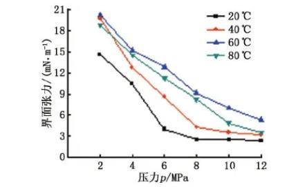 不同温度和压力对AOT稳定CO2乳液的界面张力影响(二)