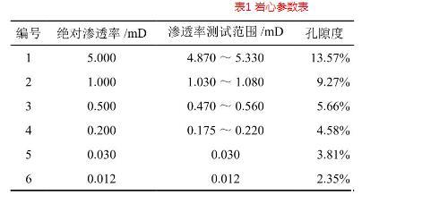 具体实验方案如下:①渗透率,分别选取5.0 mD、1.0 mD、0.5 mD、0.2 mD、0.03 mD和0.012 mD的岩心进行实验;②水封程度,根据式(1)设计水封段塞长度为0.1~4.0 cm;③裂缝内压力,通过改变出口端压力来模拟裂缝中压力,岩心出口端回压分别设置为5.0 MPa、3.0 MPa、1.0 MPa和0.1 MPa,围压设定为15 MPa;④润湿性,首先开展岩石表面润湿性测试实验,弄清不同润湿反转剂浓度时的润湿特性,然后利用润湿反转剂浓度分别为0.001 5%、0.003 0%、0.010 0%的溶液改变岩心润湿性。