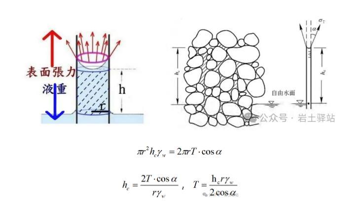 r为毛细管半径;γw为水的重度。毛细水高hc与毛细管半径r成反比。土颗粒的直径愈小,孔隙直径 (就是毛细管的直径)愈细,则毛细水的高度愈大。