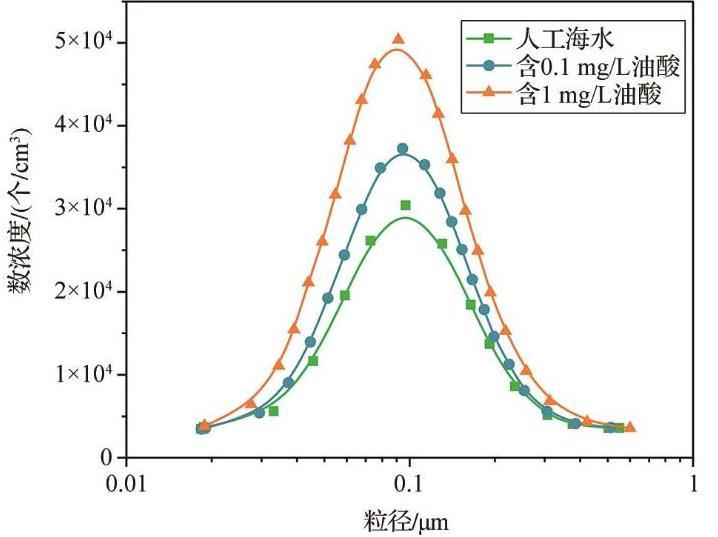 图3油酸对人工海水产生的海洋飞沫气溶胶(SSA)粒径分布的影响