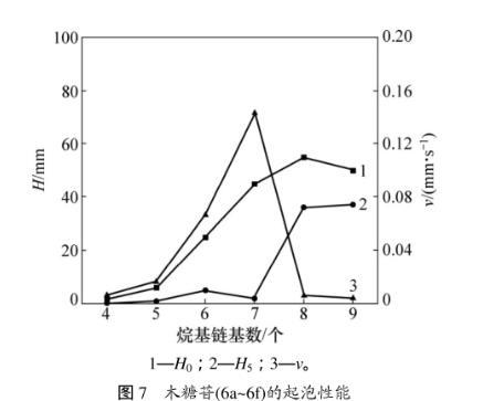 2.5烷基-β-D-吡喃木糖苷的起泡力及泡沫稳定性