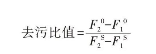其中:F10、F20分别是样品洗涤前后的白度值;F1S、F2S分别是标准洗涤剂洗涤前后的白度值。