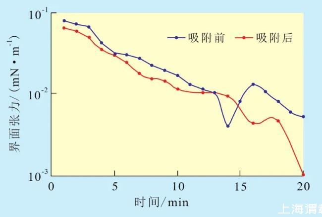 图1磺基甜菜碱泡沫剂吸附前后与原油的界面张力