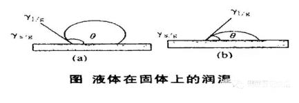 接触角就是停留在固体表面的液滴,形成固、液、气三个界面,做气/液界面的切线,与经过液体内部和固体表面的夹角。