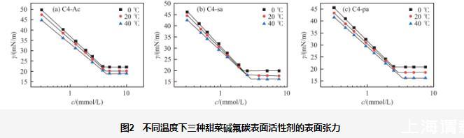 表1不同温度下甜菜碱氟碳表面活性剂临界胶束浓度和最低表面张力