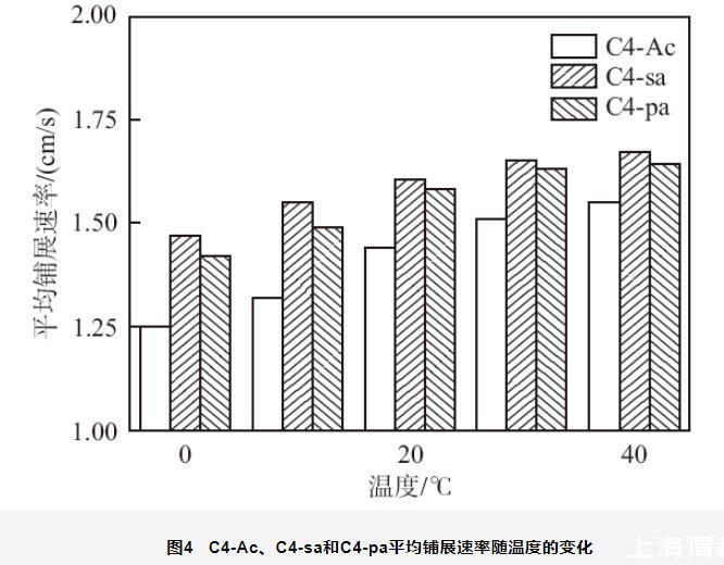 图4 C4-Ac、C4-sa和C4-pa平均铺展速率随温度的变化