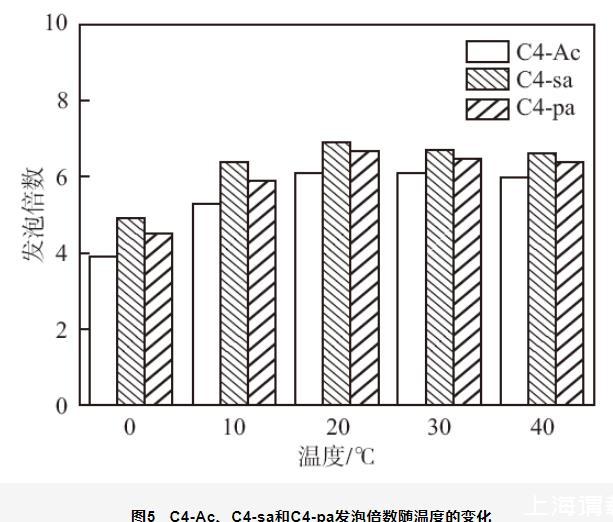 图5 C4-Ac、C4-sa和C4-pa发泡倍数随温度的变化