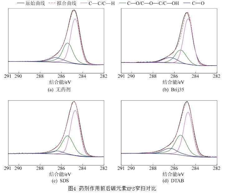 表4药剂作用前后煤表面元素含量XPS宽扫结果