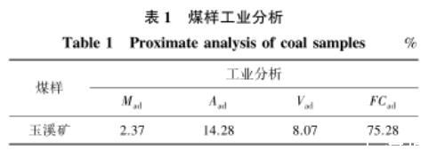 1)首先将取自玉溪煤矿煤样进行破碎,筛选出60~80目的颗粒煤6份。