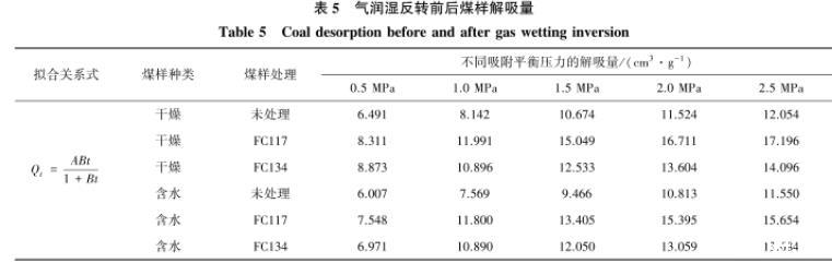 表5气润湿反转前后煤样解吸量