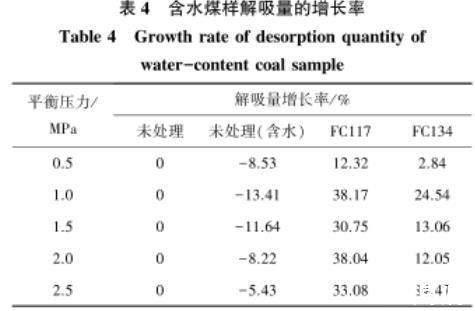 表4含水煤样解吸量的增长率