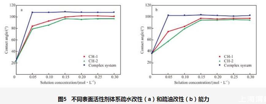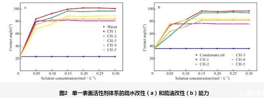 图2单一表面活性剂体系的疏水改性(a)和疏油改性(b)能力