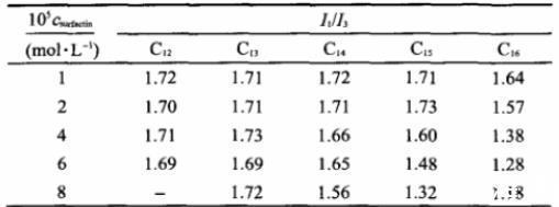 表3表面活性素浓度对胶束微极性(I1/I3)的影响